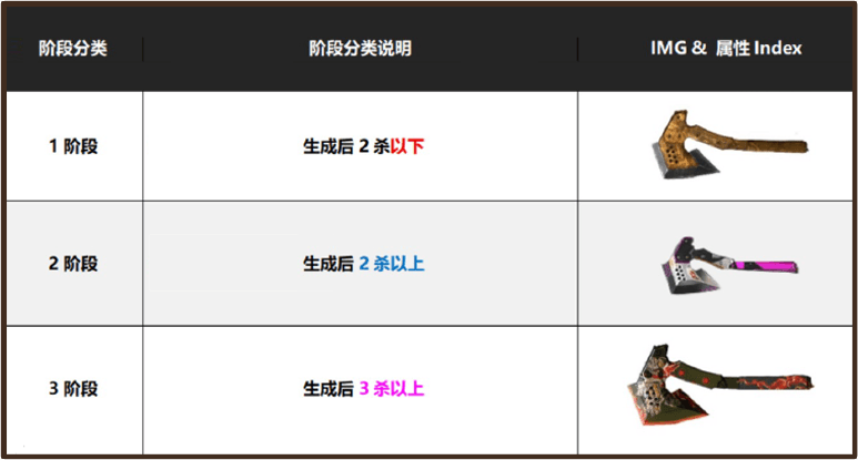 持有「战斧之主」蓝耀级道具的玩家,达成3阶段时,武器替换为专属的战斧之主,属性与3阶段官方斧头完全一致。