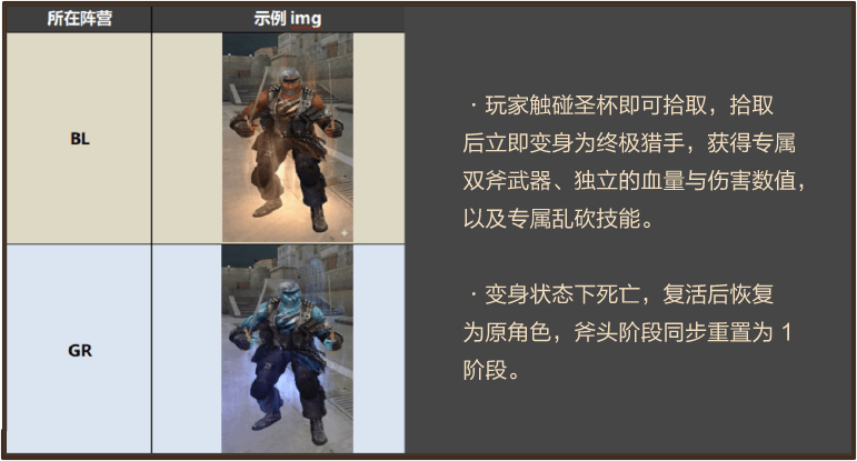 新增的特殊战PVP模式,全员使用斧头武器,主打快节奏近战对抗,新增斧头阶段成长、圣杯变身终极猎手两大特色机制
