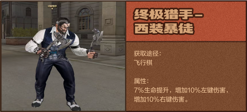 玩家触碰圣怀即可拾取,拾取后立即变身为终极猎手,获得专属双斧武器、独立的血量与伤害数值,以及专属乱砍技能。